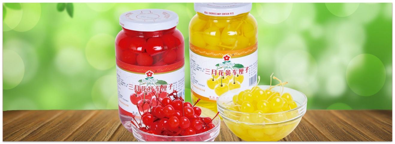 • 產(chǎn)品描述:本產(chǎn)品采用應(yīng)季新鮮的櫻桃精制而成,果肉晶瑩透亮、帶有自然的綠色,色澤均一、形狀飽滿,味道甜中帶酸,有輕微的冰涼感和濃濃的水果風(fēng)味。